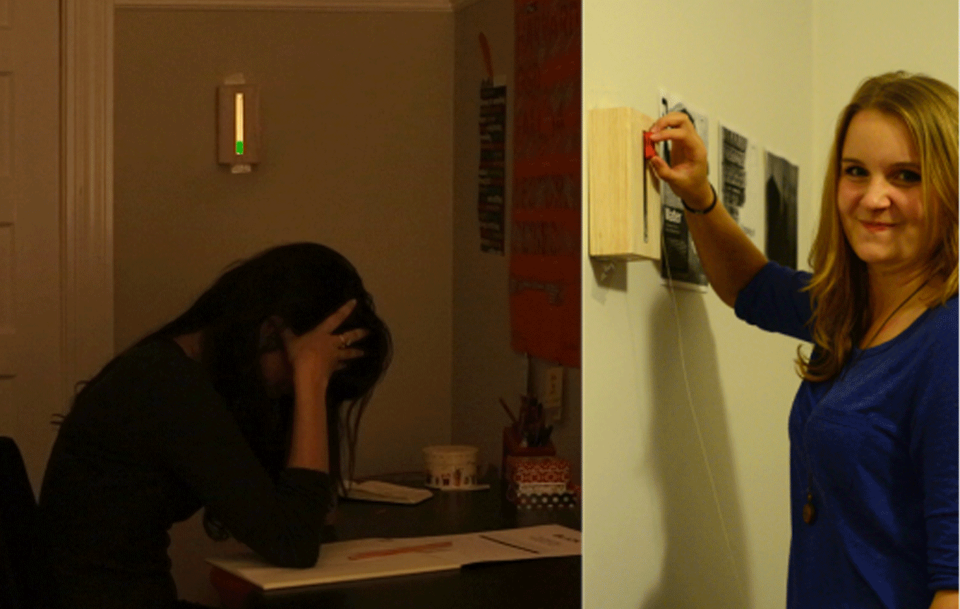 Whenever one of the two users of this interface push their light switch up, the switch of the other user goes down and vice versa. This creates a tangible form of smart energy grid.